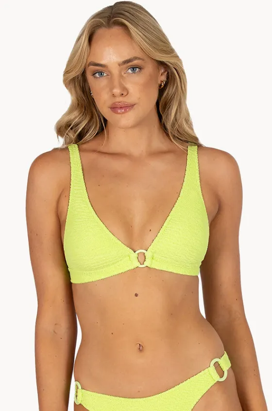Baku Ibiza Ring Front Bra in Zest features removable cups, ring detail, adjustable straps, side boning, back clip, and is best suited to B-D cup sizes.