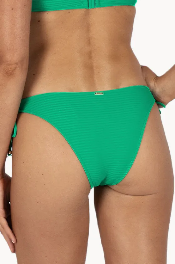 Baku Positano Rio Loopside Pant in Emerald features a regular legline, cheeky coverage, adjustable side ties, sun protection rating, is available in sizes 8-14.
