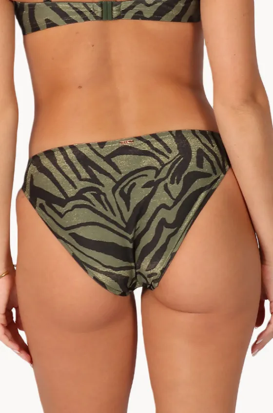 Baku Sunkissed Regular Pant in Olive features a hipster style, regular legline, medium coverage, sustainable shimmer fabric, and is available in sizes 8-16.