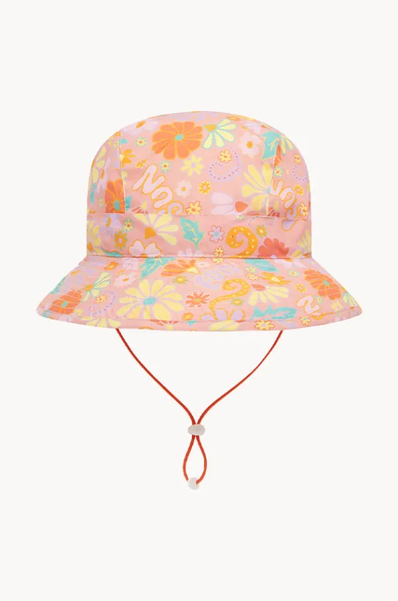 Babes In The Shade Girls Sunny Girl Sunhat in Orange/Pink offers a wide brim for sun protection, chlorine resistant, chin strap, and is available in sizes M-L.