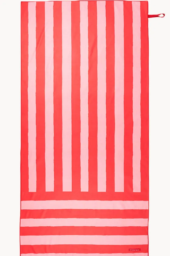 Annabel Trends Stripe Sand Free Towel in Red features a lightweight, quick drying fabrication, sand-free, absorbent, is super soft and easy to pack.