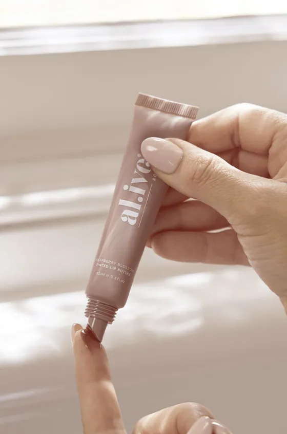 Al.ive Body Raspberry Blossom & Juniper Hand & Lip Gift Set includes 80ml hand cream, and 15ml lip balm encased in a pouch.