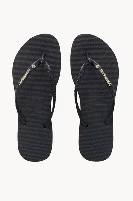 Be the first to review “Footwear^Havaianas Slim Metal Logo Crystal Thong Black/black” Cancel reply