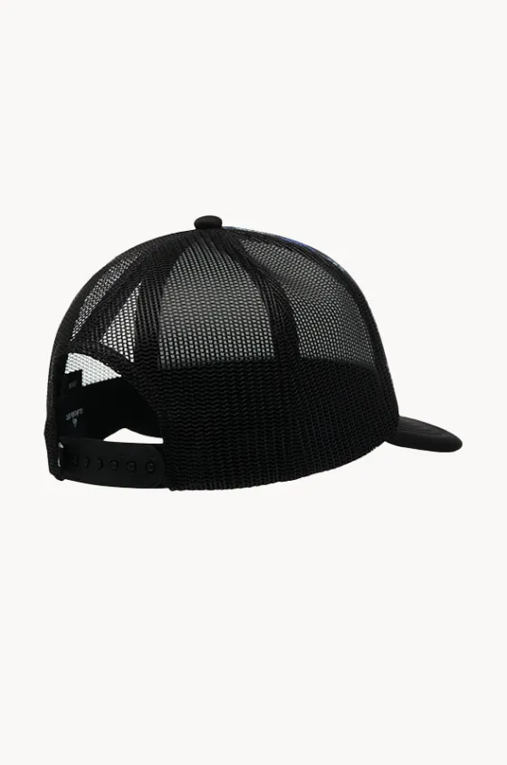 Quiksilver Boys Emu Coop Cap in Aqua features a curved peak, mesh panelling, adjustable snap back closure, and is available in O/S.
