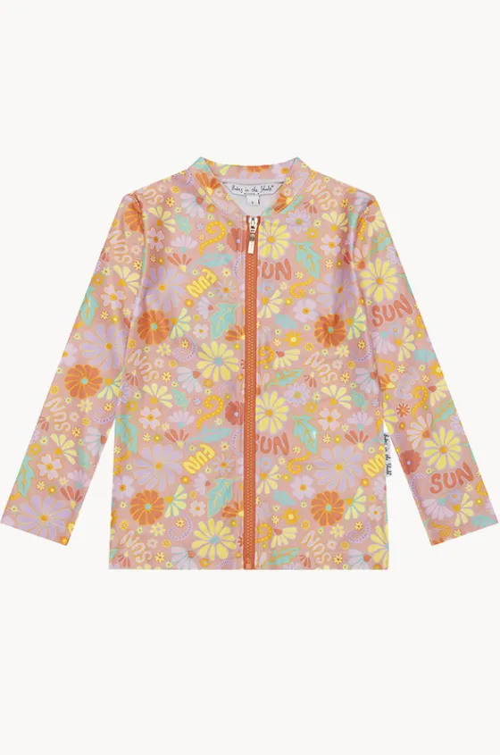 Babes In The Shade Teen Girls Sunny Girl Suntop in Orange/Pink offers UPF 50+ sun protection, long sleeves, chlorine resistant, and is available in sizes 8-14.